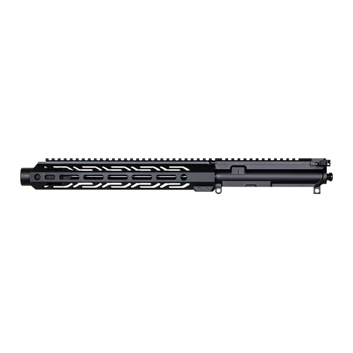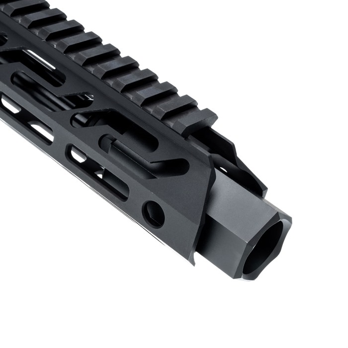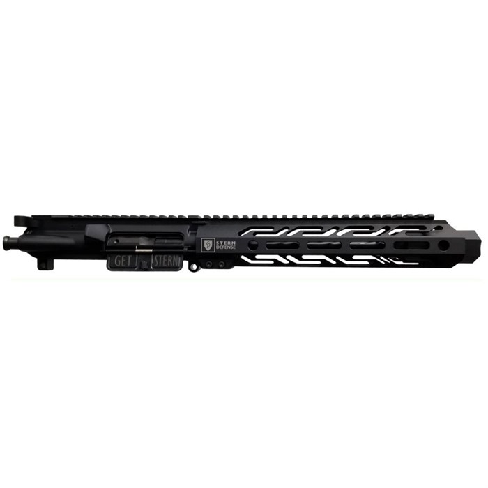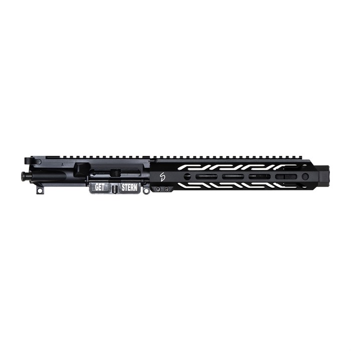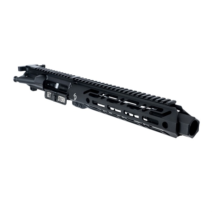 The Stern Defense SD Mod 5 9mm Upper Receivers are unique with handguards that extend beyond the end of the barrels. The 8.5” barreled upper has a 10” M-LOK free float handguard, and the 6” barreled upper has an 8” M-LOK free float handguard. To bring the muzzle out beyond the end of the handguard both uppers have SD HBC 9MM Blast Can installed. Both barrels have a 1-10 rate of twist, ½-36 muzzle thread pitch, and a Melonite finish. 8.5” or 6” barrels M-LOK Free Float handguard Complete assembly with 9mm bolt and charging handle ½-36 muzzle thread pitch SD BU9 9mm Bolt Included in the upper receiver is charging handle and the Stern Defense 9mm Bolt which is compatible with both Glock and Colt SMG magazines, has a Mag-Phosphate finish, and is works in conjunction with the Law Tactical Folding Adapter. The Stern Defense SD Mod 5 9mm Upper Receiver is made in the U.S.A. All NFA rules apply.