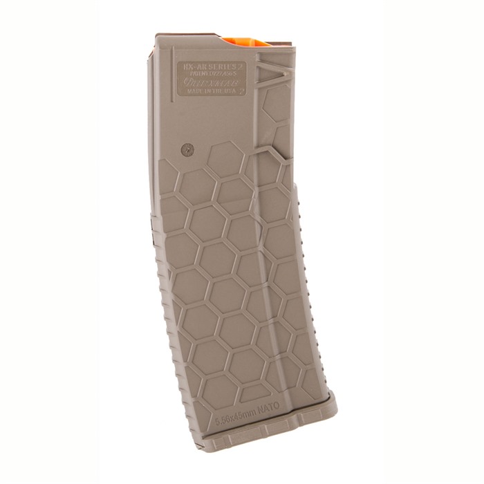 The all new Hexmag Series 2 AR-15 magazine. The 30 round magazine is used by everyone from the AR-15 enthusiast to Law Enforcement and Special Military Units. Series 2 Hexmag magazines are made to be the most durable and diverse AR-15 magazine in the market today. New features in these magazines are; stripper clip guides for easier loading and a lead in ramp above the catch pocket for increased stability in the weapon. The magazines are made from Hexmag’s proprietary polymer that is ultra-durable even in the harshest of conditions. Hexmag magazines are made in the USA and come with Hexmag’s Lifetime Warranty. Hexmag magazines feature a superior grip with a patented raised hexagonal pattern and impact resistant polymer body. Hexmag magazines feature one of the industry’s only true tool-less designs for disassembling the magazine for cleaning or installing the HexID. The anti-tilt follower and latch plate are coupled with a powerful corrosion resistant, heat treated, stainless steel spring made to be left loaded and ready for extended periods of time. Designed to be used in AR-15 rifles/pistols chambered in .223/5.56x45 mm, .300 AAC Blackout, .458 SOCOM and .50 Beowulf. 100% compatible with SCAR 16, IWI Tavor, and CZ Bren. Made in Loveland, Colorado USA
