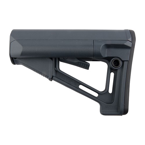 An enhanced version of the Magpul CTR® stock, the STR (“Storage/Type Restricted”) buttstock features two 4¼" left- and right-side positioned battery storage tubes and a wider cheekweld for extra comfort. Rubber caps at the rear keep the storage compartments resistant to water incursion, yet pop off easily for access to two AA or two CR-123 batteries inside. Features two integral 1¼" sling loops. Includes reversible QD swivel socket. Friction locking mechanism minimizes wobble between the buffer tube and the buttstock for a solid, secure "feel", which is enhanced by the detachable .30" thick rubber rubber that adds plenty of "grab" to prevent shoulder slippage.