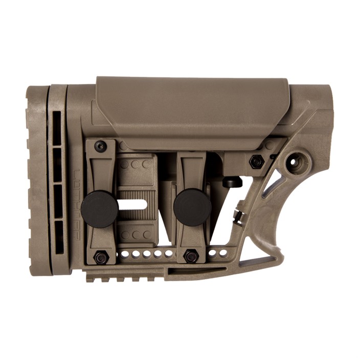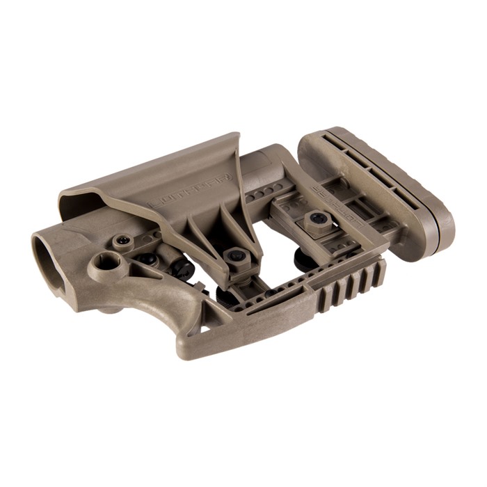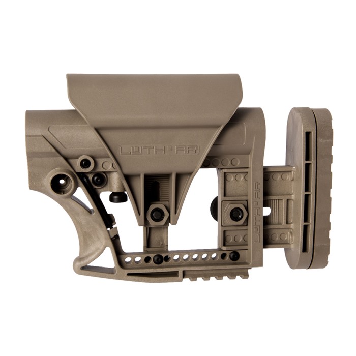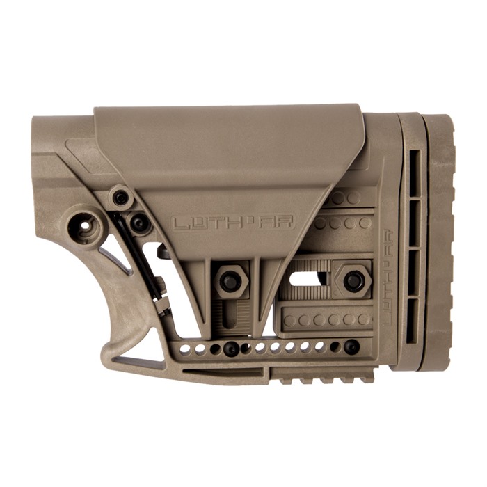 This fully adjustable buttstock assembly by Luth-AR is a perfect upgrade for your favorite rifle or your latest build. Featuring adjustment options for length of pull, as well as vertical and lateral adjustment of the butt plate, you can create a fit that is truly your own. The Luth-AR adjustable buttstock assembly also features a bottom picatinny rail for additional accessories and a set screw which enables you to lock your stock in your favorite position, while at the same time eliminating any possible rattle. Will fit commercial and mil-spec buffer tubes Works with all .223/5.56 and most .308 AR type rifles Comes with a black medium soft butt plate NOT interchangeable with A2 standard buffer tube The Luth-AR adjustable buttstock is constructed of durable lightweight polymer and available in black or FDE.
