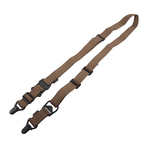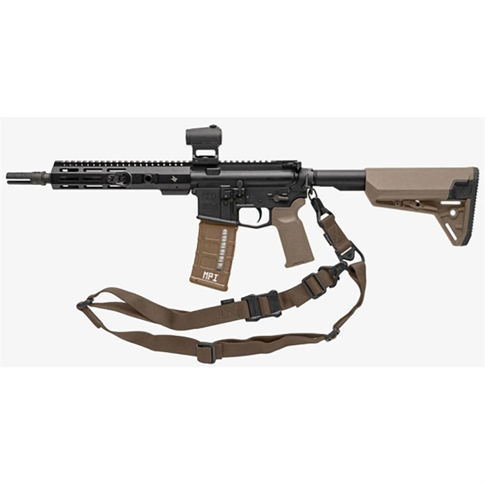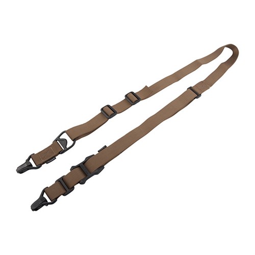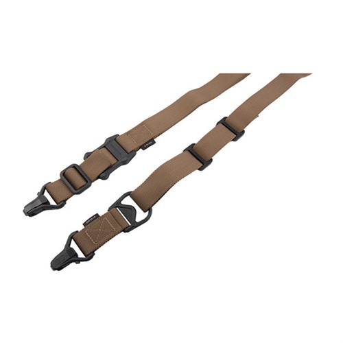 The MS3 Multi-Mission Sling System was designed to give a versatile weapon-retention solution for a multitude of tactical environments and missions. As a standalone product, the rapidly-convertible MS3 allows an operator to leverage the maneuverability of one-point attachment for direct action, or two-point attachment for stability. Single-hand adjustments and quick-release, positive-locking hardware provide flexibility and durability in a truly adaptable sling system. Used in conjunction with the optional Magpul ASAP® plate, the MS3 sling enables seamless transitions into an array of shooting positions without getting bound or fouled. The MS3 concept allows switching from Weapon Shoulder to Reaction Shoulder for shooting around corners, under vehicles, or to minimize exposure. The MS3 can also increase operator survivability by keeping the weapon in the fight in case of injury to the operator's shoulder, arm, or hand. The MS3 GEN2 incorporates a new low profile quick-adjust slider which minimizes bulk and allows for secure, yet effortless, sling adjustment. Webbing length has also been increased for a comfortable fit with all body types and armor configurations. Made in USA and 100% Berry Amendment compliant. NSN: MAG514-BLK 1005-01-640-9861 NSN: MAG514-COY 1005-01-630-9170 RUGGED POLYMER AND INDESTRUCTIBLE HARDWARE Light weight yet durable hardware made with hardened steel and heavy-duty polymer Cross-Bolt Lock Bar in each Paraclip allows the user to optionally lock its lever closed for extra security Steel Paraclip levers are case hardened and finished with a QPQ salt bath nitride process for extreme resistance to wear and corrosion SNAG-FREE, HIGH DURABILITY WEBBING Custom 1.25 inch wide nylon webbing material is strong and wear resistant while remaining anti-chaff for user comfort No tails, loops, or other potential snag hazards Colored webbing has Near Infrared (NIR) treatment to reduce IR signature ADJUSTS TO YOUR NEEDS Custom snag-free high-durability 1-1/4" webbing Fast transition between a one-point sling and two-point sling Symmetrical Paraclip™ shackles allows for easy transition and provides weapon quick-release capabilities in an emergency Low-profile adjustment Slider for adding or removing sling tension in two-point mode with a single-hand SPECS Length, Overall Nominal: 48-60 in. ± 5 in. adjustment Slider Adjustment Range: 10 in. Width, Webbing: 1.25" SLING MOUNTING REAR - Works with the Magpul ASAP® for optimal shoulder transitioning in one-point mode as well as SGA® Receiver Sling Mounts. Also compatible with many snap-hook style sling loops* and standard or QD sling swivels. FRONT - Compatible with the Magpul RSA®, M-LOK® Paraclip™ Sling Mount, MSA®, and shotgun Forward Sling Mounts, as well as many snap-hook style sling loops* and standard or QD sling swivels for use in two-point mode. * Snap-hook style sling loops with an inner diameter of at least 3/8" are required, but 9/16" and larger will provide full range of motion.