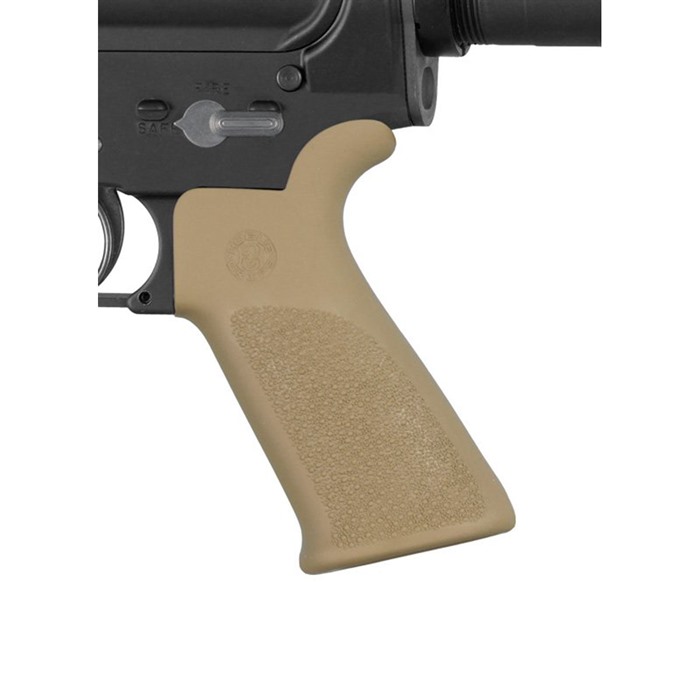 OVERMOLDED RUBBER BEAVERTAIL GRIP FOR AR-15/M16 This AR-15 pistol grip from Hogue features their classic soft rubber overmold over a fiberglass construction. Features a high beavertail, no finger groves, and a textured finish. FEATURES Gentle palm swells fit comfortably in hand Textured with Hogue's famous Cobblestone pattern for an efficient non-slip, non-irritating stippled grip Beavertail™ cushions the hand on recoil and offers increased hand comfort higher on the frame Made from long-lasting, durable, thermoplastic elastomer that ages gracefully for years of service Virtually impervious to all oils and solvents associated with firearms NOTE: Does not include screw, washer or plug. SPECS Precision fit for AR-15 / M16 rifles Material: OverMolded® rubber without finger grooves Texture: Cobblestone™ Color: Black Weight: 2.6 oz