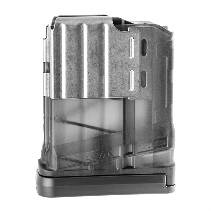 When they set out to develop a tough and reliable .308 polymer magazine on the market, Lancer took engineering inspiration from the L5AWM (5.56) and the SIG Sauer MPX, combining the best advances of both to bring the L7AWM 7.62X51mm magazine to life. The L7AWM is lightweight with steel feed lips that wrap completely around the magazine to maximize stiffness and reliability while preventing dimpling to the front of the magazine. A switchable drain lock in the floor plate comes standard on all L7s, allowing users to configure the magazine for either water-borne or extreme dust conditions. The L7AWM is designed to work in multiple weapon systems.