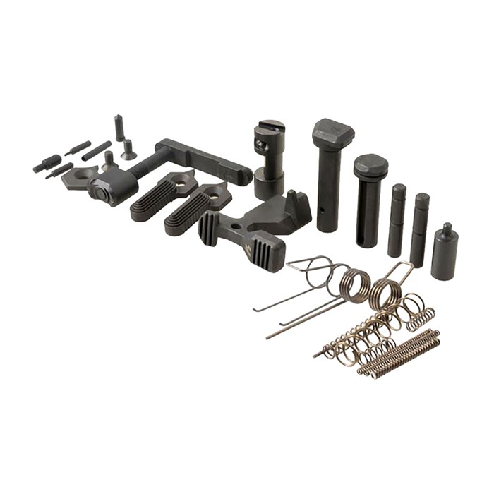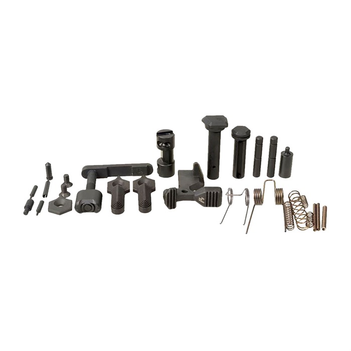 AR ENHANCED LOWER RECEIVER PARTS KIT The Enhanced Lower parts kit offers a convenient upgrade package for the AR15 for those looking for a complete Strike Industries solution for new builds, or to update their plain jane AR. This kit includes all the basics that you will need to build out your AR (minus grip), but with Strike Industries Enhanced lower parts where applicable. Complete kit includes fire control group which offers a crisp 4.5-5.5 lb pull, with unmatched smoothness for mil-spec style AR15 triggers. Longitudinally ground and polished sear engagement surfaces coupled with precision cut sear angle equate a vastly improved trigger feel without sacrificing safety or reliability.