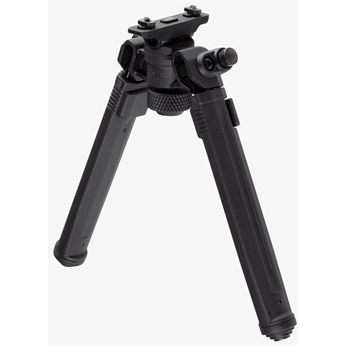 The Magpul Bipod for M-LOK offers serious strength and versatility at a price that provides unmatched value. Magpul’s lightweight Mil-Spec hard anodized 6061 T-6 aluminum and injection-molded polymer bipod brings innovation in ergonomics, functionality, strength and value together. Its low-profile design conceals its internal mechanisms and hardware, smoothly brushing off snags and bumps. Optimized for rapid one-handed adjustments, the bipod quickly and quietly transitions between user configurations. In the shooting position, it is easily loaded with stabilizing forward tension without fear of failure or warping. Its aluminum and stainless steel components, along with its injection-molded reinforced polymer, ensure years of dependable performance and reliability, all while shaving weight. It's extremely light weight, at just over 11 oz. Leg extensions slide and lock securely with the push of a button on any of the seven half-inch spaced locking detents. The legs extend 3.5 inches, from 6.8” to 10.3”. An industry-exclusive 50° of total tilt and 40° of total pan are controlled by a glove-friendly knurled tool-less bipod locking knob located between the extended legs. It also has the exclusive ability to lock pan at 0° while maintaining full tilt functionality. Folded, the streamlined housing and legs fit neatly under the barrel and are just under 2.3” deep and 3.3” wide. Anodized surfaces and tight, precision tolerances mitigate squeaks and rattles. A soft rubber bipod locking knob cap is attached to the locking knob gives users a steady, non-marring forward rest while the bipod is folded. Additionally, its staggered soft rubber feet hold fast on a variety of shooting surfaces and are easily removed with a roll pin punch. Should users choose to change feet, the Magpul Bipod’s legs accept most Atlas pattern bipod replaceable feet, except for the Atlas 5-H style. Made in the U.S.A. FEATURES Designed for streamlined storage until deployment Folded, the sleek housing and legs fit neatly under the barrel and are just under 2.3” deep and 3.3” wide Leg extensions slide and lock securely with the push of a button and a tool-less knurled bipod locking knob allows easy adjustment between shots Legs extend from 6.8” to 10.3” with seven locking detents Spring-tensioned legs stow forward when not in use, and then quickly snap down and lock into place with one hand Legs accept most Atlas pattern bipod replaceable feet to best match the needs of your environment SPECS More Information Attachment: M-LOK Slots Materials: Steel, Mil-Spec hard anodized 6061 T-6 aluminum, polymer Height, max: 10.3"" Pan and Tilt: 50° tilt and 40° pan Weight: 11 oz.