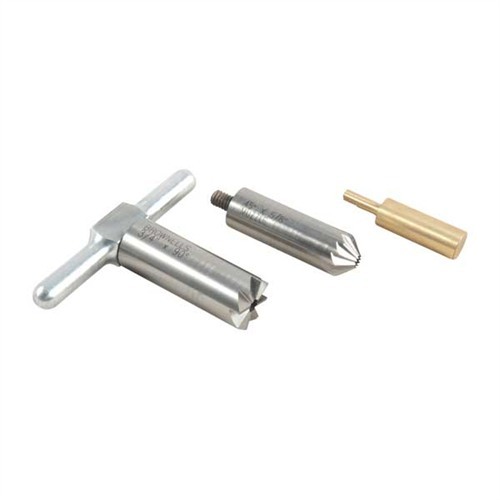 050806012790 Sada obsahuje: jeden 90° čelní řezák pro srovnání ústí po zkrácení nebo opravu poškození; jeden 45° zkosení řezák pro zaoblení hran drážkování pro čistý výstup projektilu nebo zkosení ústí revolveru pro rychlé přebíjení; navíc jednu rukojeť, která pasuje na oba řezáky a jeden mosazný pilot. Vyměnitelný pilot udržuje řezák správně zarovnaný. Zakupte si další piloty, abyste mohli používat jeden řezák pro mnoho různých kalibrů. Piloty pro jiné kalibry jsou k dispozici samostatně.Předbjednávka, dodací lhůta je přibližně 4-12 týdny ze skladu z USA.