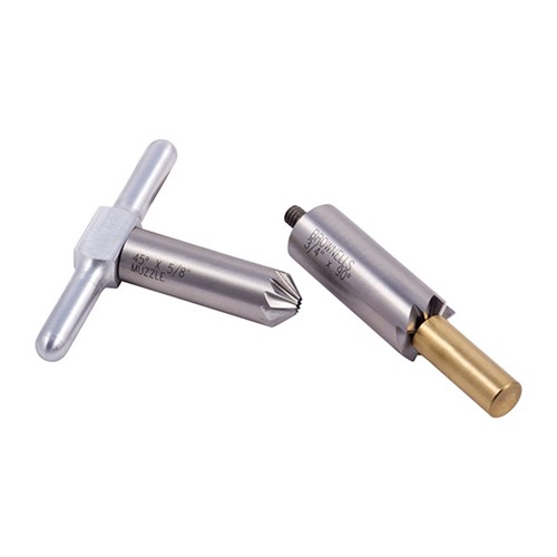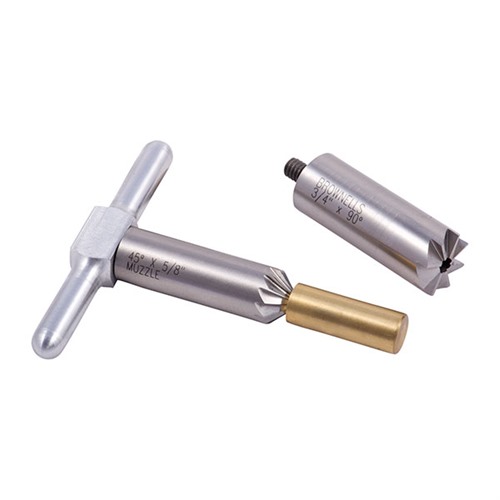 050806012813 Sada obsahuje: jeden 90° čelní řezák pro srovnání ústí po zkrácení nebo opravu poškození; jeden 45° zkosení řezák pro zaoblení hran drážkování pro čistý výstup projektilu nebo zkosení ústí revolveru pro rychlé přebíjení; navíc jednu rukojeť, která pasuje na oba řezáky a jeden mosazný pilot. Vyměnitelný pilot udržuje řezák správně zarovnaný. Zakupte si další piloty, abyste mohli používat jeden řezák pro mnoho různých kalibrů. Piloty pro jiné kalibry jsou k dispozici samostatně.Předbjednávka, dodací lhůta je přibližně 4-12 týdny ze skladu z USA.