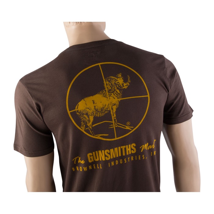 We’ve teamed up with another big name in the firearm world, Magpul®, to bring you comfort and style all wrapped up in the Brownells Vintage Logo T-shirt. The front sports the our "Retro Rifle" logo, while the back proudly boasts the original Brownells logo of a Dall sheep ram framed by scope crosshairs. These fine cotton T-shirts are crafted to be the softest, most comfortable mid-weight shirts in your drawer. We’ve always liked the quality (and the waggish humor) of Magpul’s T-shirts, so when we got the opportunity work with them to get the same quality for our own shirts, we jumped at it. Soft, durable, 100% ring-spun cotton Pre-shrunk Side seam Cut-N-Sew construction Available in Brown and Green, sized from Small all the way up to the big boys’ 3X-Large Brownells Vintage Logo T-shirt uses Magpul’s exclusive Cut-N-Sew pattern, with a side seam to control twisting and torquing to prevent your shirt from binding you or riding up as you run those fast-paced drills at the range. Sure, you probably have lots of T-shirts, but we’re confident this is the one you’re going to find yourself reaching for most often!