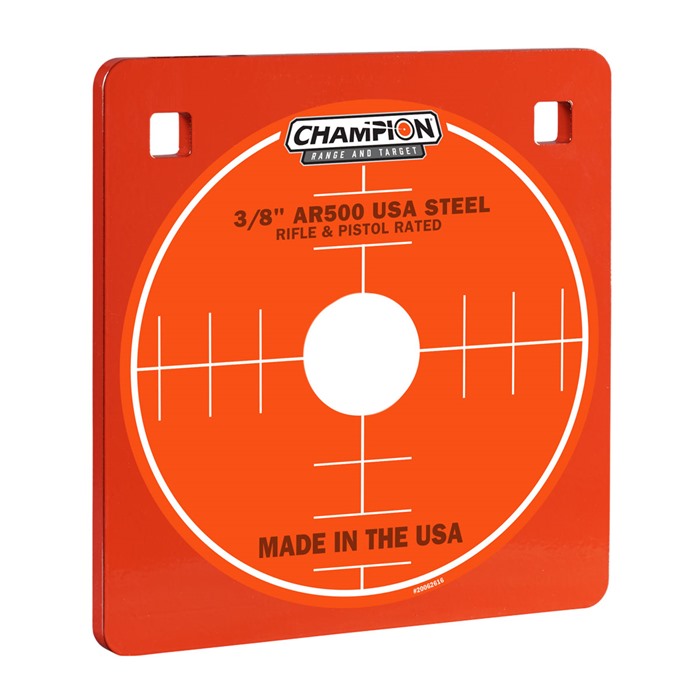 Steel targets have always provided solid benefits for target shooters, due to the fact that they offer instantaneous visual and audio confirmation of an on-target hit. The Champion Center Mass Steel Targets are a great addition to any range setup. The Champion Center Mass Steel Targets are constructed from high-quality AR500 steel, which is chosen specifically for its ability to stand up to most centerfire rifle rounds for years of dependable, durable service. Square-shaped target design Target options available in 4-inch and 8-inch diameters Measures 3/8 of an inch thick The Champion Center Mass Steel Targets feature clean edges that are precision-cut with laser-guided equipment. Easy mounting is provided through the use of square-cut holes designed for use with 1/2-inch carriage bolts.