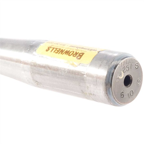 All the loving care of the best stockmaker and the meticulous attention to detail of the master machinist will not make a gun shoot any straighter than the accuracy capability of the barrel used. And, it is the insides of a barrel, that very small and vital area of lands and grooves over which the gunsmith has no control, that can determine whether the finished work of art is for shooting - or “just for looks”. Craftsmanship . . . not price . . . determines the quality of a barrel. But, by the same token, the customer willing to spend the money for a custom gun is shortsighted indeed, if he starts economizing and orders “just any old barrel so long as it’s cheap”. Furthermore, he is jeopardizing your reputation as a gun builder by making such a request. We, as your supplier, are laying our reputation (and yours, too!) on the line by offering you barrel blanks. They have got to be good or we are in trouble! Big trouble!! We must never sell you anything but that which will enlarge your stature with your trade. And, we feel that the Brownell Barrel, made for us by Ed Shilen, will do just that! Shilen barrels, either chrome moly or Stainless, are rifled with six lands and grooves by the “Cold Forming” process using carbide dies made in Shilen’s own plant under the most rigid controls. This rifling method achieves extremely close inside uniformity from breech to muzzle. Finished barrels are air-gauge inspected (air-gauged sensitivity is .00005" - five-one-hundred-thousandths!) and 6X borescope in- spected. All barrels, .22 through .30 caliber have groove tolerances within .0005" and uniformity within .0003" No straightening is done, and all barrels are completely stress-relieved. All stainless steel barrels are hand lapped at the factory. Only those barrels passing all spec tests are offered to the trade. Any barrel even slightly “suspect” is started through the production process again and bored to a large caliber. In no other way can quality and reputation be maintained. Slightly more expensive to produce - but vastly greater in quality and ultimate performance.