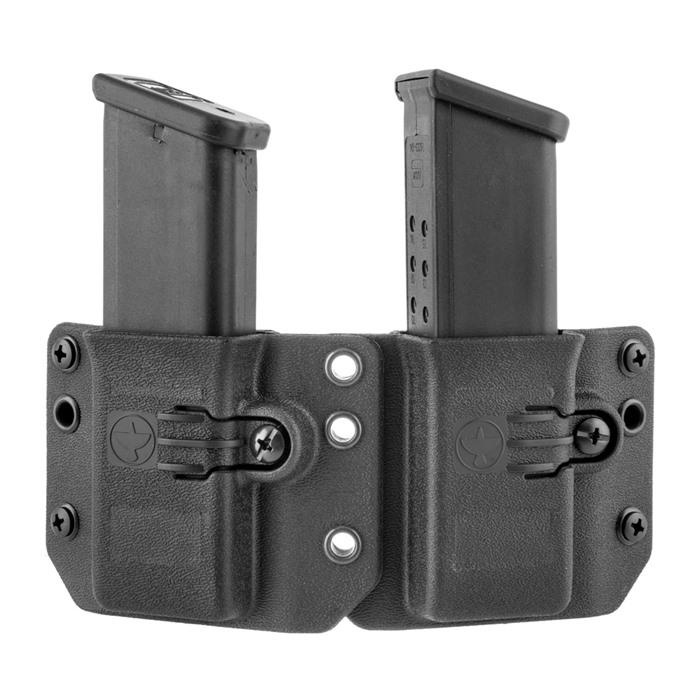 The Copia magazine carriers are premium, duty-grade, injection-molded magazine carriers designed for hard-use, daily concealed carry. Their innovative cavity design and retention system allows them to be used ambidextrously with the double-stack magazines of nearly 100 different handgun models chambered in 9/40/357 Sig. They are available in singles or doubles, and have a body-hugging contour which is not only more comfortable than traditional magazine carriers; it is also more concealable. Shooters can also select between the standard tall body-style, which is compatible with all of Raven Concealments modular belt attachments, or short body-style which only works with their closed loops and QMS. Finally, you can buy one pistol magazine carrier that will work with nearly all the handguns in your collection! Just some of the models we have found to fit the Copia are: Glock 9/40 Smith & Wesson 9/40 Sig Sauer 229, 226, 320 CZ P-09, P-07, 75B Heckler & Koch VP9, P30, P2000 Beretta M9, 92, 96, PX4 FN FNP, FNX, FNS 9 Springfield Armory XD 9/40, XDM 9/40 Styer 9/40 Browning Hi-Power