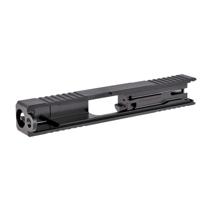 Our Leupold Delta Point Pro Cut Slide for Glock® 19 Gen3 pistols features distinctive, wraparound front cocking serrations that aid in manipulating the slide to check the chamber or clear a jam. (OK, we’ll admit it: the serrations just look cool, too.) It also comes with a pre-cut slot for easy, secure mounting of a Leupold Delta Point Pro or compatible footprint red dot sight. All DPP Slides also have standard Glock® factory front and rear sight dovetails for "iron" backup sights. To get proper co-witnessing with the DPP, you will need to also install suppressor-height iron sights. You can also get your Brownells DPP Slide for Glock® 19 Gen3 with a "window" cutout on top that enhances airflow to keep the barrel cool - ideal for hard-working action competition pistols. Plus, if you have an upgraded barrel with a contrasting finish or a unique exterior pattern (fluting, spirals, "flames," etc.) the window lets you show it off a bit! Each DPP Slide for Glock® starts life as a billet of 17-4 stainless steel that is machined to Glock® factory specifications inside, so it’ll fit factory frames and accept factory or aftermarket barrels and Gen3 internal parts. Slides are heat-treated to Rc 41-44 on the Rockwell C scale for added surface hardness and wear resistance. Fits Gen3 Glock® 19 pistols & clones Machined from corrosion-resistant 17-4 stainless steel billet Leupold Delta Point Pro footprint Plus factory front/rear sight cuts Available with distinctive top Window cutout or traditional Solid top A Brownells DPP Slide is the ideal upgrade for your factory Glock® 19 Gen3 pistol. Brownells Gun Tech™ Note: Channel liner required for these slides. Channel liner is a press fit and requires a tool to install. We recommend #777-100-017. Includes patented optic cut technology pioneered by ZEV Technologies. Patent No. RE47335