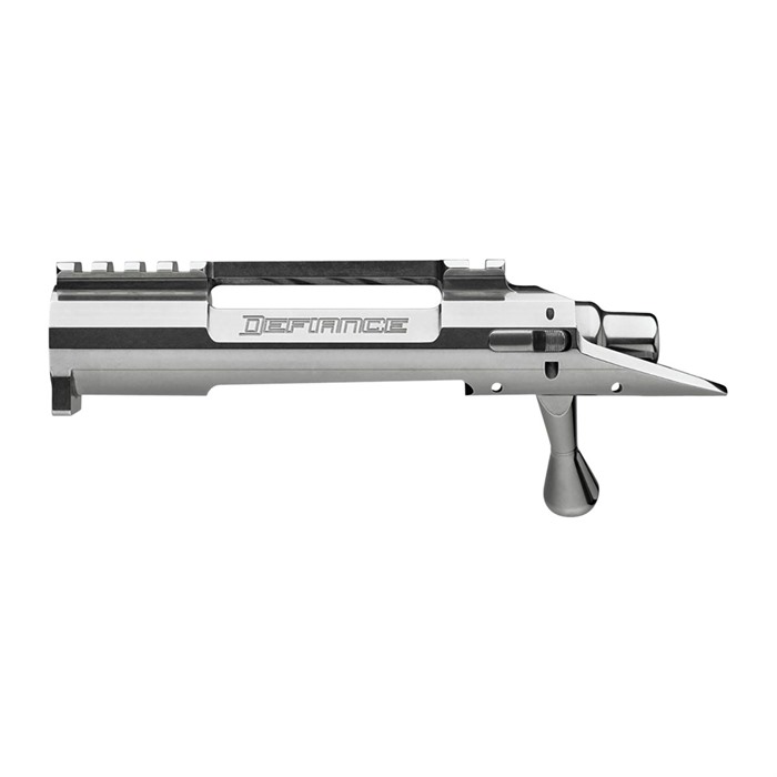 In its Deviant Hunter action, Defiance Machine developed what it considers to be the ultimate hunting-rifle action, which is machined from 416 stainless steel complete with an integrated scope base with a narrowed center that allows for easy top-loading of the magazine. The action features a single scope-ring slot in the rear of the receiver and four slots at the front of the receiver. The Defiance Machine Deviant Hunter action can be had in a number of configurations. The Long Action Magnum model comes with a .545 bolt face and is designed for use with hinged floorplates and Wyatt's Ultra Mag and standard internal box magazines. The Long Action model comes with a .595 bolt face and is designed for use with Rigby-length internal box magazines. A Medium Length action is equipped with a .408 bolt face. Each Defiance Machine Deviant Hunter action is outfitted with a one-piece bolt made from 4340 chrome-moly steel. The barrel threads are designed for use with Remington 700-style barrels, and the integral scope mount features 20 MOA of built-in elevation. The action also features an integral recoil lug.