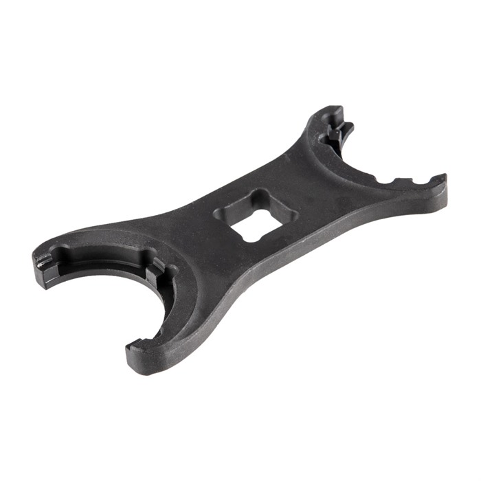 JCW (Joint Castle nut Wrench) is a dedicated, heavy duty twin castle nut wrench, precision CNC machined from 4140 steel, heat treated and black oxided, it's something FDC has always wanted and needed. They couldn't find one they liked, so they answered their own prayers and made it. Like many AR users, FDC used either a heavy and unwieldy armorer’s wrench, or a cheap stamped sheet metal castle nut wench that couldn't be used with a torque wrench, both work, but neither is great. One is overkill, the other is barely adequate. The handy JCW combines two castle nut wrenches in one. On one end, it has a conventional 3 lug castle nut wrench, spanning 180 degrees. On the other end, it has a unique two lugs wrench, spaced only 90 degrees apart. JCW measures 3.5"x 1.84" (at its widest), but is surprising heavy at 3.14oz, due to its 4140 steel construction. JCW was designed from the start to be used with a torque wrench. On some end plates with QD swivel sockets, the sockets housing masks a good portion of the castle nut's circumference, and there are occasions where not all 3 wrench notches are accessible. FCD’s own ESF (End plate, Sling adapter, Forward Controls) covers up 1/4 of the castle nut's circumference (ESF's QD swivel housing acts as a backdrop to ensure it won't bend under unforeseen pulling force) JCW's 2 lug wrench is designed specifically for this task. JCW has a center socket for use with a torque wrench. TM calls for 38 to 42 ft/Lb of torque to be applied to the castle nut prior to staking in two places, this torque value is conveniently engraved on the JCW as well. JCW is proudly designed and made in the US, it is a collaboration between Forward Controls Design and Arson Machine Co, OR. Billet machined Heat treated 4140 Dedicated castle nut wrench 2 lug castle nut wrench 3 lug castle nut wrench