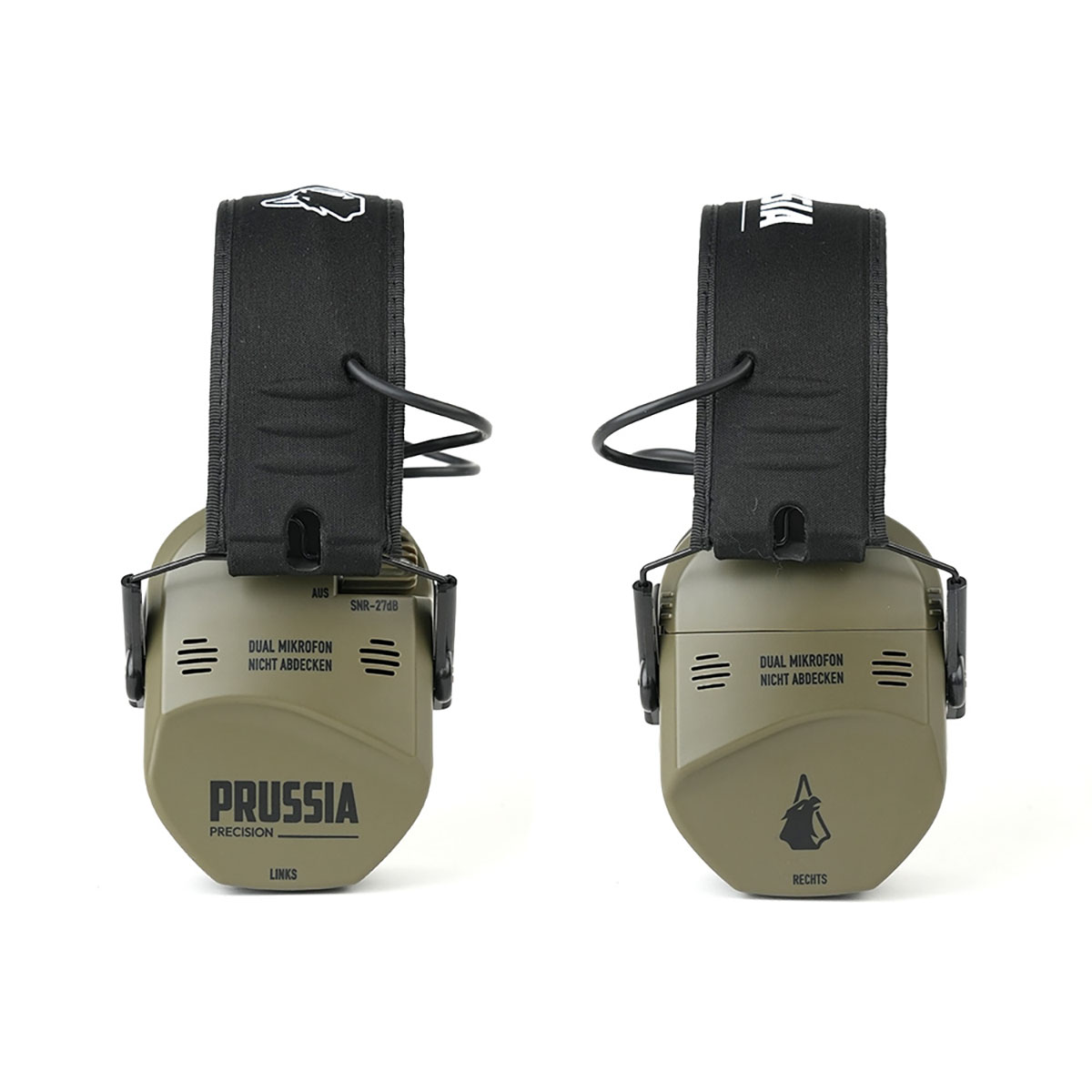726529840773 The Prussia Precision Electronic Shooting Earmuffs are a compact and professional hearing protection solution designed for shooters, hunters, and users who require both protection and awareness at the same time. Built for indoor and outdoor range environments, they combine fast impulse suppression with clear sound amplification, allowing you to stay protected without disconnecting from your surroundings. Equipped with two directional microphones per side, the earmuffs deliver enhanced spatial awareness and more natural surround perception compared to standard electronic hearing protection. Ambient sounds such as speech, range commands, and movement are reproduced with clarity, while harmful impulse noise is automatically suppressed. The system uses sound-activated compression with an ultra-fast 0.02 second reaction time, instantly reducing loud impulses like gunfire to safe levels. Full dynamic range, high-fidelity speakers and a low-noise sound profile ensure balanced, natural audio reproduction without harsh distortion. Designed for extended wear, the earmuffs come standard with premium gel ear pads, providing superior comfort, reduced pressure points, and an improved seal — especially when worn together with shooting glasses. The sound-dampening composite housing and reinforced headband with a metal wire frame ensure durability in demanding environments. A recessed single volume control allows simple adjustment, while an integrated audio input jack provides optional external connectivity. The external battery door enables quick battery changes in the field. Finished in Stone Grey Olive, the earmuffs combine professional performance with a clean, modern appearance. Please note: The earmuffs operate on 2×AAA batteries (not included).Dodací lhůta je přibližně 3-6 dní.