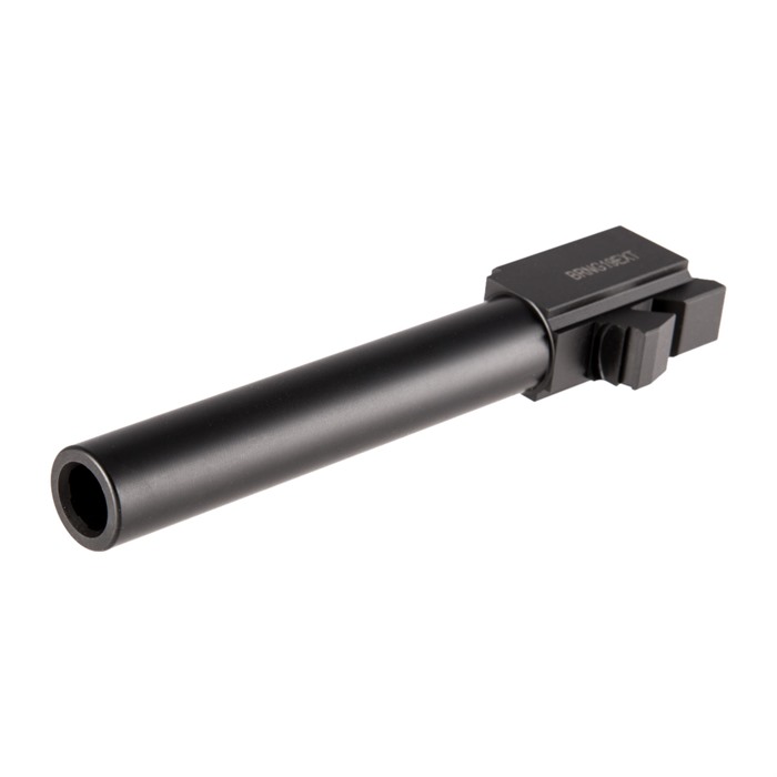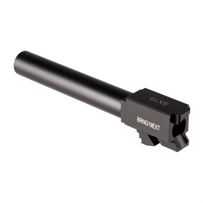 The Brownells Extended Barrel for Glock® 19 is designed to work hand-in-glove with our extended slides for the popular compact 9mm pistol. Due to changes in the slide-to-frame geometry caused by mating the long slide on the compact Glock 19 frame, a factory Glock 17 slide will not work with our slide. This extended barrel is correctly configured to ensure that your new "long slide" G19 functions perfectly. This extended barrel and the slide work together to give you a longer sight radius for more accurate shooting and better recoil control - and a pistol that’s more comfortable to shoot all around. Our Extended Barrel for Glock 19® is available with a Plain muzzle or Threaded (1/2"-28 tpi) to accept a compensator or silencer. Easy drop-in installation 9mm Luger chambered (of course!) Corrosion-resistant 416R stainless steel Durable black Nitride finish for excellent resistance to surface wear 1-10" right-hand 6-groove rifling Threaded model has ½"-28 muzzle threads Constructed of high-grade 416R stainless steel alloy, this extended barrel is precision machined to ensure an exact fit to drop right into your pistol’s extended slide and preserve the superior reliability and performance your expect from your Glock® 19.