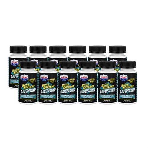 Used and recommended by major firearms manufacturers, Lucas Extreme Duty Bore Solvent & Ultrasonic Gun Cleaner is a premium blend of cleaning solvents and corrosion inhibitors. It easily removes carbon and powder residue from actions as well as copper and lead fouling from cylinders and barrels. The solvent based formula cleans deep to remove old oils and grease and provides a micro thin layer of rust and corrosion inhibitor on metal surfaces and bores. It is safe on polymers and factory applied firearm finishes. Lucas Extreme Duty Bore Solvent & Ultrasonic Gun Cleaner’s solvent based formula was designed to thoroughly and efficiently clean firearms using an ultrasonic cleaner. Its high flash point makes it ideal for heated tank ultrasonic cleaners. The special formulation is designed to be used straight from the bottle without any messy mixing and without having to use a rinsing agent or lubrication dip, saving you time and money. After ultrasonic cleaning, simply remove your firearm, allow it to drip dry or used compressed air, lubricate per manufacturer’s instructions and reassemble. Your firearm is clean, protected from corrosion inside and out, lubricated and ready for storage or carry. Cleans and protects your firearms, provides excellent rust protection. Low odor, pleasant grape scent, contains no ammonia, kerosene or water. Great for use in ultrasonic cleaners, solvent based formula requires no mixing, rinsing or oil dip after ultrasonic use, saving time and money. Ideal in heated units, flash point of 210° F is much safer than other products.