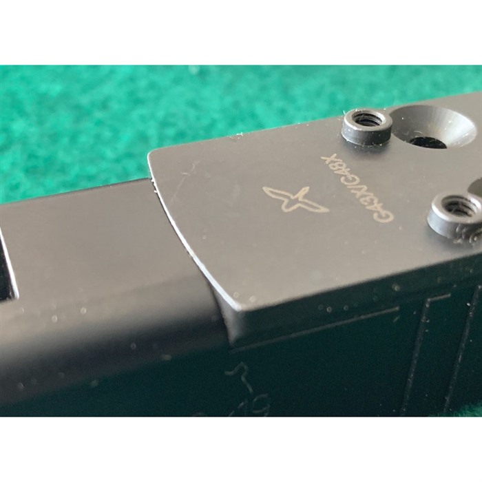 OPF-G43x/48, RMRcc (Optics Platform, Forward Controls, G43x/48, RMRcc) is the latest member of the OPF line. G43x and 48 MOS slides are designed for direct mounting of the Shield RMSc sight. Trijicon's RMRcc is longer, and requires an adapter plate which also necessarily raises the mounting surface in order to mount an RMRcc. RMRcc has its own footprint. Gone are the two lug holes in front, these are replaced by two larger diameter threaded posts (bosses) through which the sight to mount/plate screws are installed. The sight to mount/plate screws are also significantly strengthened, though with the OPF-G, RMRcc design that holds the sight immobile on the plate, the larger diameter and stronger screws aren't as important, we always welcome screws that are less likely to strip. With the OPF-G43x/48, RMRcc, we didn't merely raise the mounting surface to provide a platform for the RMRcc. As RMRcc is longer than the G43X/48 MOS cut, the sight overhangs on the slide. When installed, the bottom of RMRcc (with Trijicon provided sealing plate installed) is almost flush with the top of the slide so the sight is as low as possible. We positioned the RMRcc towards the center of the plate as much as feasible, this is done to reduce the amount of unsupported overhang on the RMRcc's sealing plate in front. RMRcc has a rubber gasket around its battery compartment to keep water and moisture at bay, which pushes the sealing plate downward. This isn't an issue if the plate is of the same length as the RMRcc, but with an overhang, it creates a slight gap between the gasket and the sealing plate. OPF-G43x/48, RMRcc's design eliminates the gap/opening between the sight and sealer plate, to the point of emulating a plate that's as long as the sight itself. To wit, if the plate is as long as the RMRcc, it will make the installed height of RMRcc even taller, which is the very reason we chose to let the sight overhang. Torque value: Plate to slide: 12 to15 in·lbs. Sight to plate: 18 in·lbs.. Weight: 0.75oz Material: 1018 steel, black nitrided