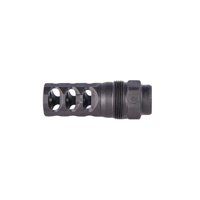 Elevate your shooting experience with the cutting-edge PWS FRC compensator, serving as a suppressor host for the Rearden Atlas suppressor mounting system—compatible with popular suppressors like the BDE 556. Crafted with precision and innovation, this compensator stands as a premier selection for a diverse range of shooting scenarios. The PWS FRC compensator sets itself apart by prioritizing recoil reduction as its primary function while simultaneously excelling at flash suppression. Its distinctive 3-port design skillfully redirects flash away from optics and the line of sight, ensuring an unobstructed view and minimizing overpressure. When paired with suppressors, the FRC boasts a tight lockup and maintains it through hard shooting cycles, ensuring reliability in any situation. Mounted precisely, the FRC becomes a crucial component in your rifle's comprehensive recoil management system. By effectively mitigating recoil and muzzle rise, this compensator enables swift follow-up shots, ultimately delivering improved shooter control and accuracy, even in rapid-fire scenarios. Choosing the PWS FRC provides the best of both worlds—superior recoil management and effective flash suppression—making it an indispensable asset for any shooter looking to enhance their shooting prowess and overall experience on the range or in the field. Select between flat shouldered option, for traditional rifle barrels, or tapered shoulder, for barrels with a tapered shoulder behind the muzzle threads.