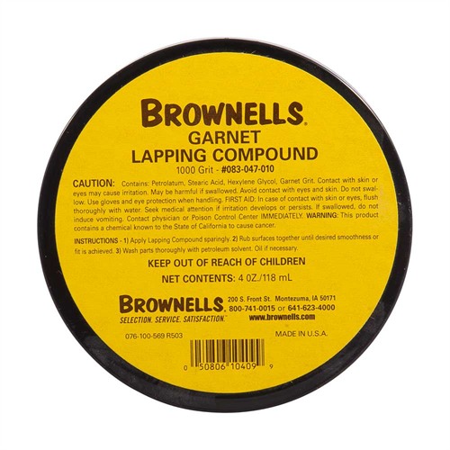 GARNET LAPPING COMPOUNDS, GK-10 GARNET LAPPING COMPOUND s jemností 1,000 grit je ideální volbou pro jemné úpravy těsně pasujících částí. Tento výrobek od značky BROWNELLS je rychle působící, avšak zcela nevsakující, ropná abrazivní pasta, která vám pomůže dosáhnout ultra hladkého a bezfrikčního spojení.