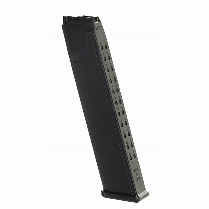 Some of the most popular magazines used today are the Glock-pattern mags developed initially for the Glock G17 and compatible with some of the most popular 9mm Glock handguns on the market, including the G19 and the G26. These aftermarket Glock 17/19/26 polymer magazines bring enhanced capacity to these pistol platforms, as well as all of the other Glock magazine-compatible carbines and handguns available today. Each Glock 17/19/26 polymer magazine is built for use with the 9mm cartridge, and the magazine body is constructed using DuPont's proprietary Zytel polymer, which has been proven to be durable and long-lasting. Constant spring pressure is provided by a heat-treated chrome-silicon wire spring. The magazine are all made in the USA and feature an all-black finish.
