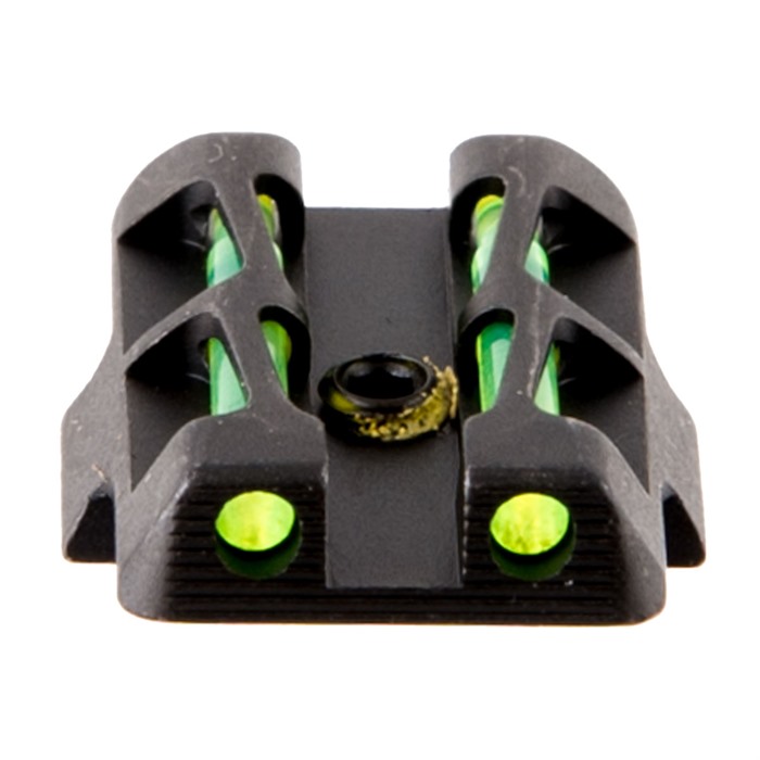 The new LITEWAVE sight design from HIVIZ features an innovative, diagonal-wave design that increases durability to the protective exoskeleton and allows for more exposed surface area for the LITEPIPE to gather light from all angles, for the brightest sight available. GLLW11 is 6.1mm high, and fits models 42 and 43. GLLW15 LITEWAVE Rear Sight is 6.5mm high, and fits 9mm, .40 S&W, and .357 Sig models. All rear sights include red, green, and black LitePipes.