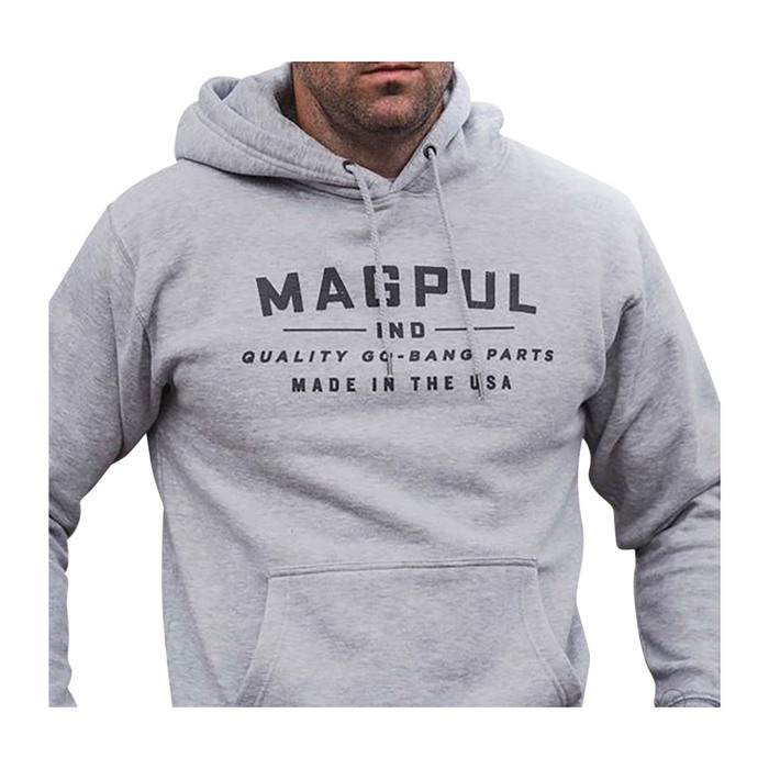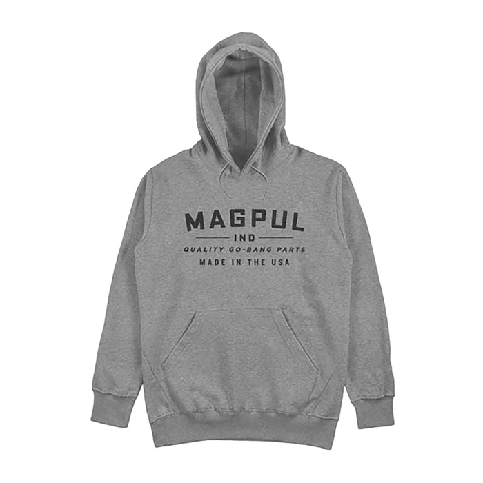The Magpul “Go Bang Parts” Hoodie is a warm and comfortable mid-weight cotton blend fleece pullover with Magpul’s classic “Go Bang” design. The three-piece hood is lined with the same premium fleece as the rest of the hoodie for extra warmth on those colder days. The kangaroo pocket, rib knit cuffs, bottom hem, and tag-less interior round this hoodie out into a comfortable, everyday option. 60% Cotton, 40% Polyester, 9.75 oz Premium fleece fabric with self-fabric lined hood Kangaroo hand pocket at front Three-piece hood with drawcord Rib knit cuffs & bottom hem Comfortable, tag-less interior neck label Printed in the USA