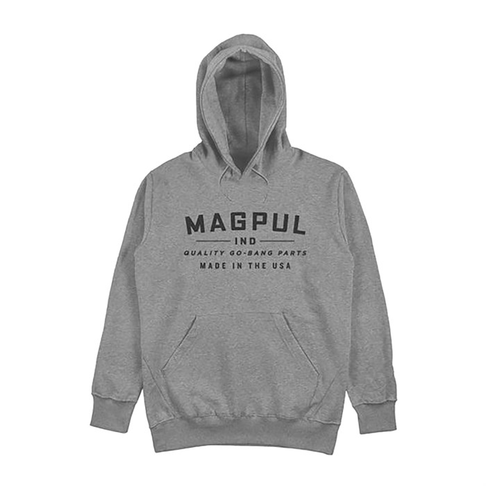 The Magpul “Go Bang Parts” Hoodie is a warm and comfortable mid-weight cotton blend fleece pullover with Magpul’s classic “Go Bang” design. The three-piece hood is lined with the same premium fleece as the rest of the hoodie for extra warmth on those colder days. The kangaroo pocket, rib knit cuffs, bottom hem, and tag-less interior round this hoodie out into a comfortable, everyday option. 60% Cotton, 40% Polyester, 9.75 oz Premium fleece fabric with self-fabric lined hood Kangaroo hand pocket at front Three-piece hood with drawcord Rib knit cuffs & bottom hem Comfortable, tag-less interior neck label Printed in the USA