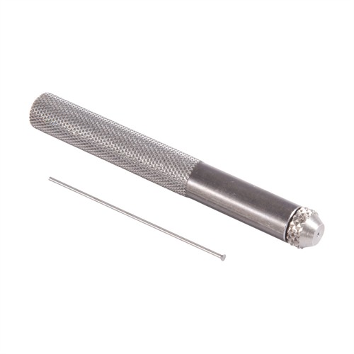 SPECS: Handle 3" (7.6cm) long x 3/8" (9.5mm) diameter. Pins are 2" (5.1cm) or 2½" (6.3cm) long. Replacement Pin Punch Sets include the following pin sizes: 0.039", 0.060", and 0.091" in either 2” or 2 ½” lengths.
