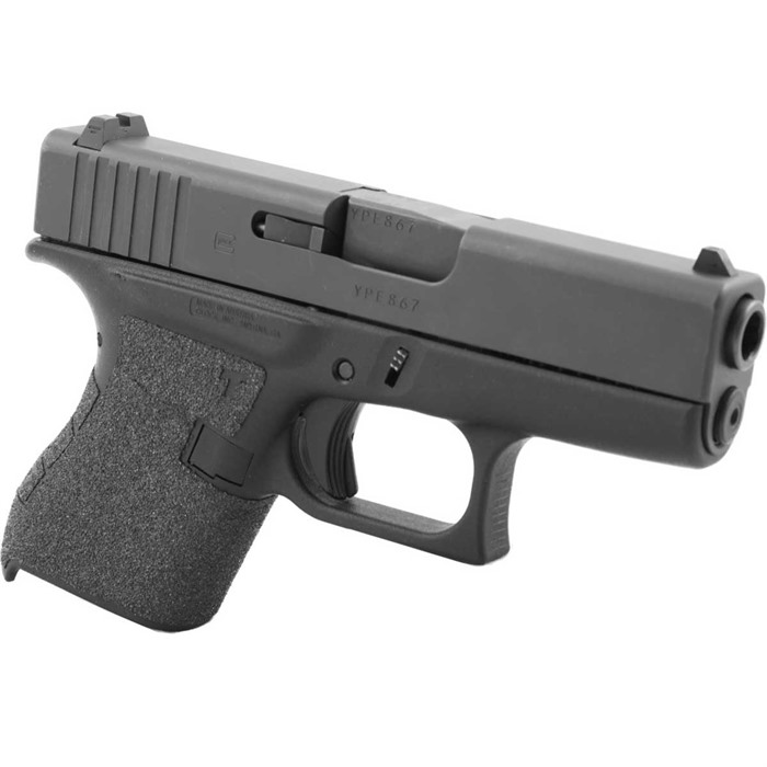 The Glock G43 is a great pistol for concealed carry, thanks to its small size and thin profile. However, these two qualities mean that users aren't able to obtain as solid of a grip on this pistol as they can on full-size guns. The Talon Glock G43 Grip Tape enhances the texture on this pocket pistol. The Talon Glock G43 Grip Tape is a non-permanent addition to your gun that anchors into place, thanks to a solid adhesive. The tape covers both side panels, thumb rests, backstrap and beneath the trigger guard, ensuring that users have all of the principal grip areas enhanced. Comes in rubber and granulate textures Color: black Features cutouts for controls The Talon Glock G43 Grip Tape also features a "GLOCK" graphic, as well as Talon's "T."