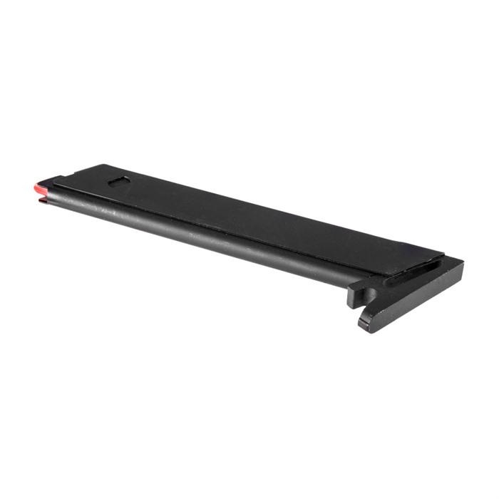 High Standard .22 LR 10-Round replacement magazines are carefully manufactured to the correct specifications for your High Standard pistol. With an improved feed lip design, High Standard .22 LR 10-Round replacement magazines will deliver smooth, reliable performance. All-steel mag tube with welded-on steel base plate Blued finish matches your classic pistol High-visibility red plastic follower instantly verifies mag "loaded" vs "clear" status May require minor fitting to the ejector of your particular pistol to ensure full insertion into magwell A semi-auto pistol is only as reliable as its magazines, so why compromise the performance of your classic High Standard pistol? With a few extra .22 LR 10-Round replacement magazines on hand, you can spend less time reloading or trying to coax old, worn out mags to feed properly, and more time shooting. NOTE: Duramatic 10-round magazine fits original High Standard Duramatic pistol, as well as Plinker and Sears Model 80 - all chambered in .22 LR.