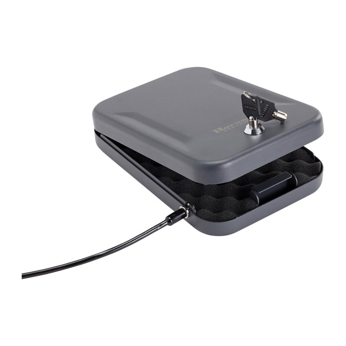 Secure your valuables with Hornady's Lock Box, featuring 16-gauge steel, a heavy-duty security cable, and foam interior for protection, all on a budget.