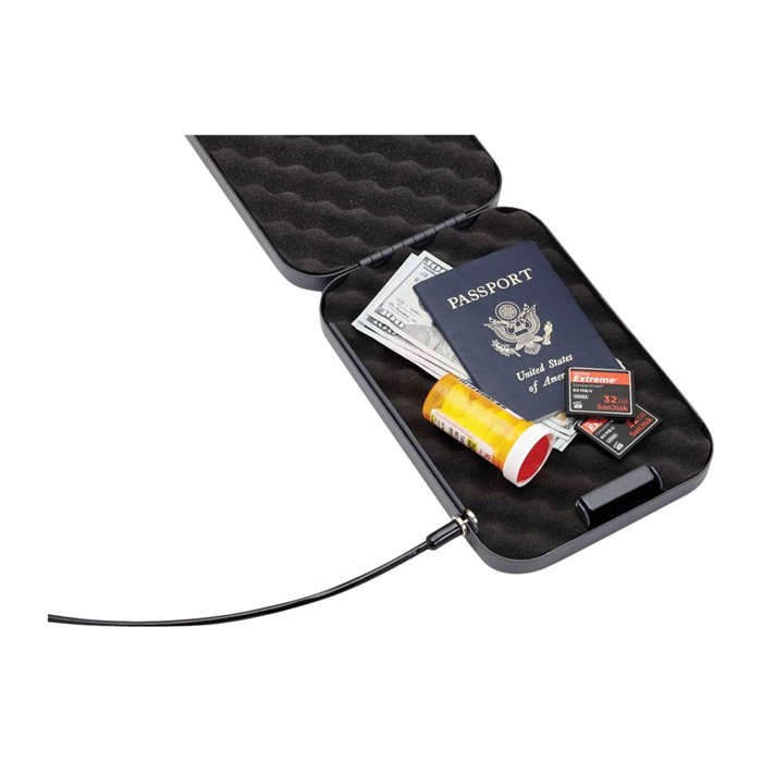 Každý Security Lock Box je uzamčen ocelovým válcovým zámkem a dodává se se dvěma klíči. Interiér boxu je potažen pěnou, která chrání jakýkoli předmět uvnitř před poškozením.