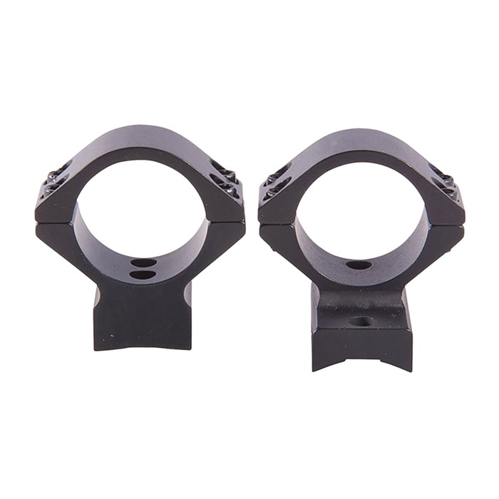 SPECS: 7000 series aluminum, black, anodized, matte finish. Accepts 1" dia. scopes, unless otherwise listed in fits column for 30mm dia. scopes. Height from bottom of ring to top of receiver: Low - .400" (10.1mm), Med - .500" (12.7mm). High - .640" (16.3mm), X‑High - .740" (18.8mm). Approx. weight 2.1 oz. (59 g). Some heights vary, see chart below. Rem. 700 also fits 721/722/725 and 40X models. Rem. Model Seven fits receivers with four screw holes. Savage AccuTrigger fits round top centerfire receivers with AccuTrigger. Win. 70 fits .860" rear hole spacing only.
