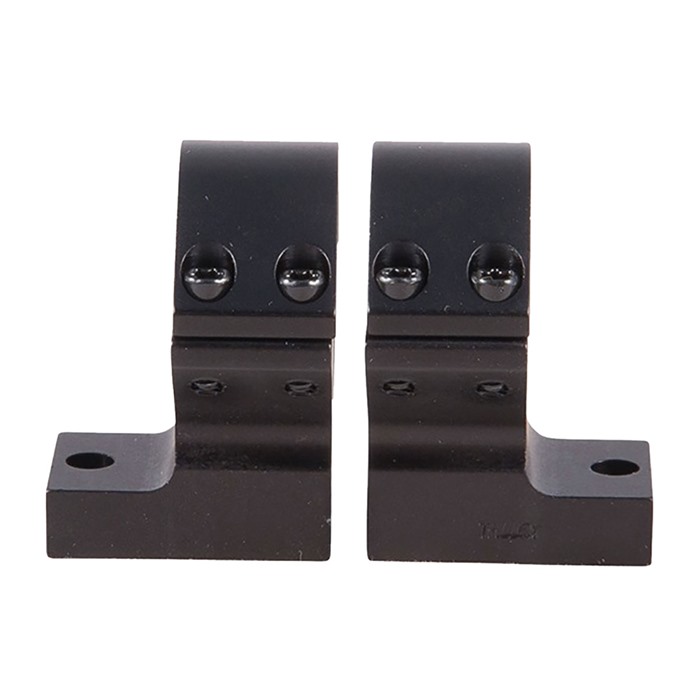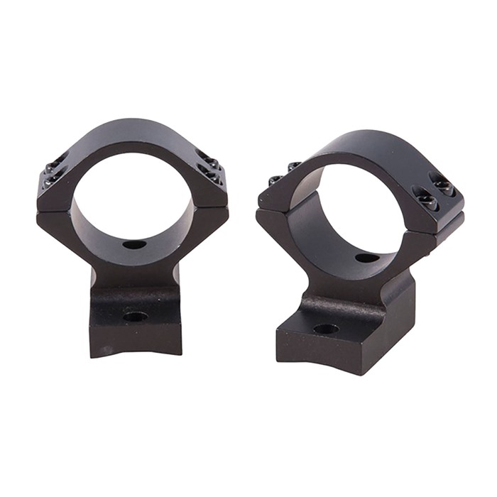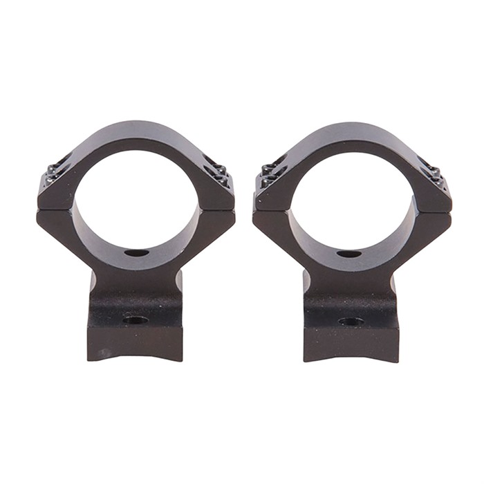 SPECS: 7000 series aluminum, black, anodized, matte finish. Accepts 1" dia. scopes, unless otherwise listed in fits column for 30mm dia. scopes. Height from bottom of ring to top of receiver: Low - .400" (10.1mm), Med - .500" (12.7mm). High - .640" (16.3mm), X‑High - .740" (18.8mm). Approx. weight 2.1 oz. (59 g). Some heights vary, see chart below. Rem. 700 also fits 721/722/725 and 40X models. Rem. Model Seven fits receivers with four screw holes. Savage AccuTrigger fits round top centerfire receivers with AccuTrigger. Win. 70 fits .860" rear hole spacing only.