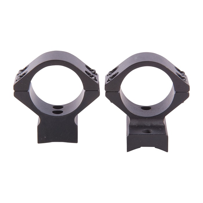 SPECS: 7000 series aluminum, black, anodized, matte finish. Accepts 1" dia. scopes, unless otherwise listed in fits column for 30mm dia. scopes. Height from bottom of ring to top of receiver: Low - .400" (10.1mm), Med - .500" (12.7mm). High - .640" (16.3mm), X‑High - .740" (18.8mm). Approx. weight 2.1 oz. (59 g). Some heights vary, see chart below. Rem. 700 also fits 721/722/725 and 40X models. Rem. Model Seven fits receivers with four screw holes. Savage AccuTrigger fits round top centerfire receivers with AccuTrigger. Win. 70 fits .860" rear hole spacing only.