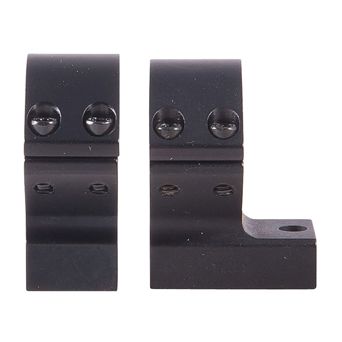 SPECS: 7000 series aluminum, black, anodized, matte finish. Accepts 1" dia. scopes, unless otherwise listed in fits column for 30mm dia. scopes. Height from bottom of ring to top of receiver: Low - .400" (10.1mm), Med - .500" (12.7mm). High - .640" (16.3mm), X‑High - .740" (18.8mm). Approx. weight 2.1 oz. (59 g). Some heights vary, see chart below. Rem. 700 also fits 721/722/725 and 40X models. Rem. Model Seven fits receivers with four screw holes. Savage AccuTrigger fits round top centerfire receivers with AccuTrigger. Win. 70 fits .860" rear hole spacing only.