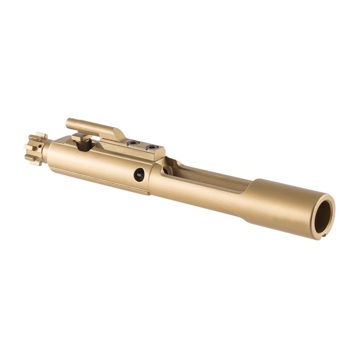 Adding aftermarket components to an AR-15 doesn't have to be about practicality and utilitarianism. Sometimes, the look of a finished rifle plays into the selection of components. Get an eye-catching design in your rifle with the addition of the Brownells TiN M16 Bolt Carrier Group. The Brownells TiN M16 Bolt Carrier Group provides AR owners with both rugged durability and an incredibly stunning look, thanks to the bright gold titanium-nitride finish used on the surface of the carrier and bolt. The carrier is made using 8620 tool steel, while the bolt head is machined from durable 9310 tool steel. The bolt is magnetic-particle inspected to ensure that consumers get the best-possible components, and the carrier itself is heat-treated for added durability. Bolt-carrier group weighs 12 ounces Designed for use in 5.56 NATO, .223 Rem., .300 Blackout and .204 Ruger AR-15s Includes M16 carrier notch for reliable performance in full-auto rifles The Brownells TiN M16 Bolt Carrier Group arrives ready to install, completed with torqued and staked gas key and an O-ring already present on the extractor.