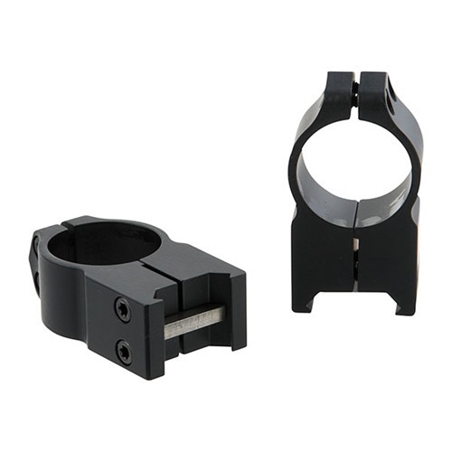 Vertically split rings, precision-machined from steel bar stock, hold large objective, heavy scopes firmly against recoil. Finished to exacting tolerances so the scope returns to zero, even after repeated dismountings. Permanent mount (PERM) uses two socket screws to solidly lock rings to base, especially suitable for rough duty applications.