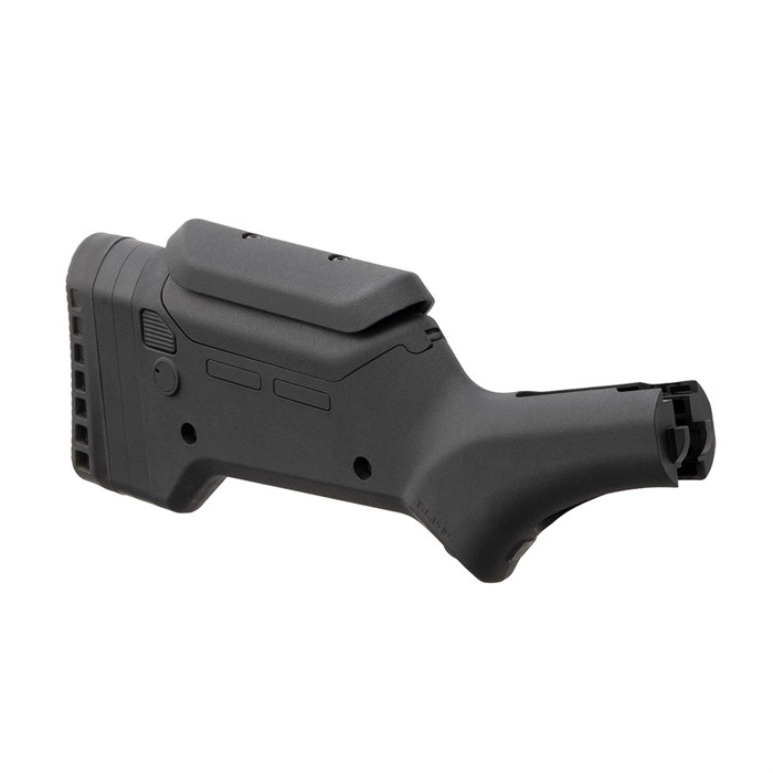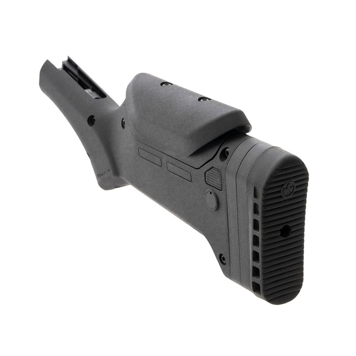 The ELG M-LOK Stock is designed to provide Marlin lever-action rifle shooters a stock with maximum adaptability that optimizes their iconic firearm. With adjustable length-of-pull (LOP) and comb height for various types of optics, storage of extra ammunition or accessories in a weatherized portion of the stock, and the ability to attach various Magpul M-LOK accessories and slings, Magpul brings new capability to the lever- action rifle. The stock allows for a one and a half (1.5”) inches of overall LOP adjustment (from 12.5” to 14.0” in 0.5” increments. The stock ships with a cheek riser and 2 x 0.25” shims for a total comb height adjustment of 0.75”, which attaches to the internal storage compartment door. The stock has an internal storage area, complete with a quiver for six (6) .45-70 Gov’t or 30-30 Win cartridges, and an open storage compartment insert. The stock also accepts Type 1 or Type 2 QD cups for a mounting a sling, and two (2) M-LOK slots reside on each side of the stock for further accessory mounting options such as an ammo saddle. Rounding out the stock’s state-of-the-art feature set is a sling swivel located in the bottom of the pistol grip which allows for shorter slings and a higher muzzle-down carry option. Adjustable LOP (1.5” total adjustability in 0.5” increments) and comb height (0.75” total adjustability in 0.25” increments) On-board ammo storage that is modifiable to other storage needs Includes both a quiver for six (6) .45-70 Gov’t or 30-30 Win cartridges and an open storage compartment insert M-LOK slots for accessories Proprietary recoil pad Sling-swivel on pistol grip allows for easy carry COMPATIBILITY - The stock is compatible with the Marlin 1895, 1894, and 336 receivers. Pre-Ruger® and Remington-built Marlin rifles are compatible with this stock. Cheek Height Adjustment Range - Adjustable by 1/4" increments to 0.75" with cheek riser and spacers LOP Adjustment Range - 12.5" - 14.0", in half-inch increments Length - 12.4 in. Length, max -13.9 in. Height, max - 5.2 in. Weight - 1.25 lbs, at max LOP and no cheek risers Width, max - 1.5 in.
