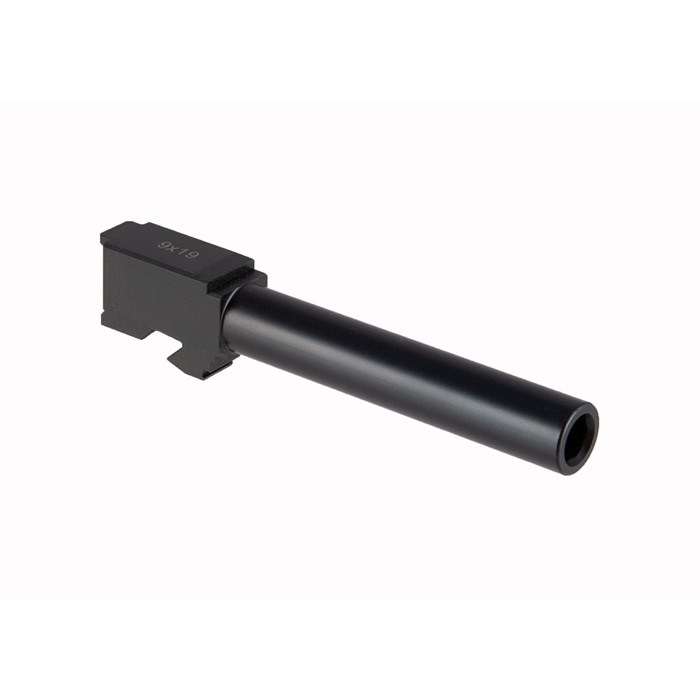 A Brownells Match-Grade Barrel for Glock® 17 is an excellent replacement for a shot-out factory barrel or for completing a custom pistol based on the Glock® platform. One of these barrels is the ideal tube for a gun built on a Polymer80 frame with a Brownells RMR Slide on top! Our Match-Grade Barrel for Glock® 17 is machined from hardened 416R stainless steel to precise dimensions for a tight lockup and long service life. Drop-in fit on most guns. The extra-hard Black Nitride finish resists surface wear and stops in its tracks whatever corrosion might try to challenge the stainless steel. This 9mm Luger (9x19mm) chambered barrel is button-rifled with standard, 1-10" right-hand, 6-groove rifling that is compatible with "practice" ammo with non-jacketed bullets. Fits Glock® 17 Gen1 thru Gen4 Button-rifled 1-10" twist 416R stainless steel Black Nitride anti-corrosion finish Threaded model has 1/2"-28 tpi threads Does not include Thread Protector The match-grade barrel for Glock 17 fits Gen1 thru Gen4 G17 pistols and is available with either a Plain muzzle or Threaded to enable installation of a compensator or sound suppressor. Both have an 11-degree target crown, and each is laser engraved with the chambering and the Glock model it fits.