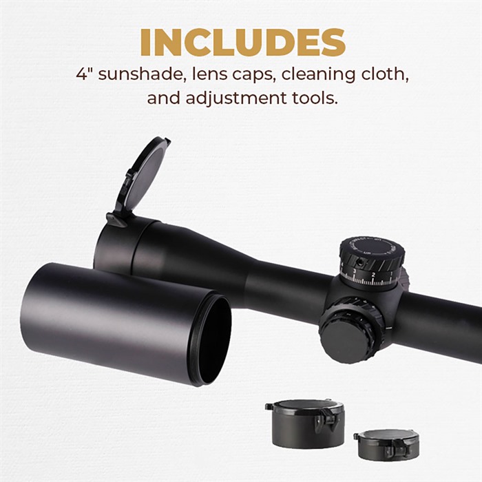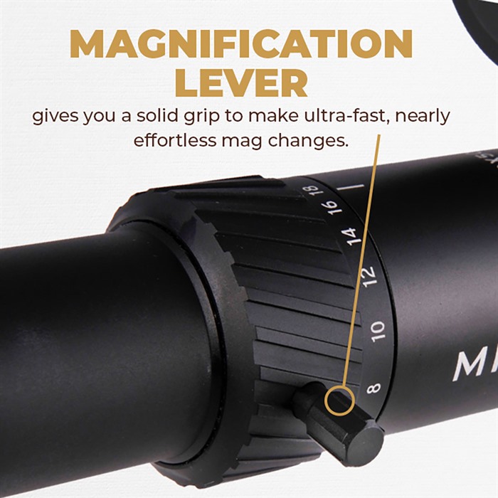 Začali jsme s plně vícevrstvým, okrajově černěným japonským sklem pro maximální přenos světla. Turret nabízí hmatové a slyšitelné kliknutí a je snadné je resetovat na nulu. Elevace turret má funkci nulového zastavení a umožňuje .5 mils pohybu pod nulovým zastavením, což poskytuje dostatek flexibility.