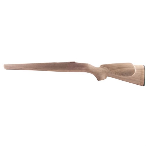 Classic lines and quality walnut enhance the looks and accuracy of the small or large ring Mauser action. Raised cheekpiece puts your eye right in line with the scope; forward slope (lowered nose) diminishes the effects of recoil. Receiver area is fully inletted, barrel channel is semi-inletted, lets you get an exact fit to your barrel contour. Fully machined and sanded; includes hard plastic buttplate. Stock requires final sanding before applying stain and finish.