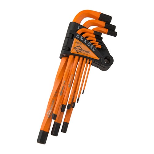 Set imbusových klíčů MAYHEW HEAVY DUTY TWISTED HEX KEY SET je ideální volbou pro každého, kdo hledá spolehlivé a kvalitní nářadí. Tento 9dílný set, vyrobený z vysoce kvalitní S2 Tool Steel, nabízí vynikající výkon a trvanlivost.