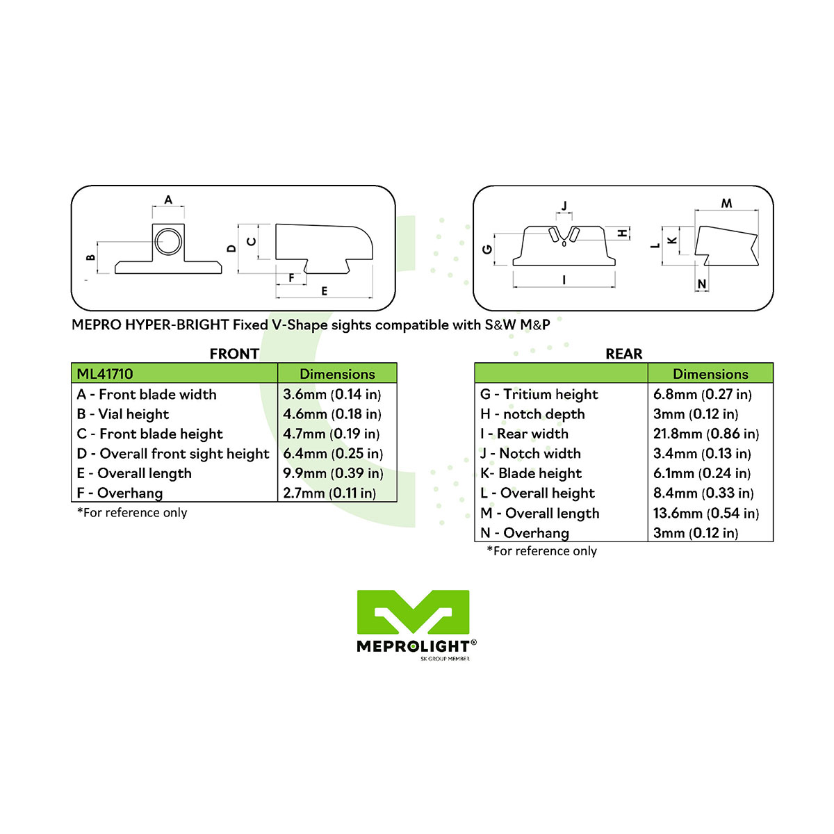 - Mepro Hyper-Bright V-sights nabízejí nejspolehlivější osvětlení pro střelbu ve dne i v noci.