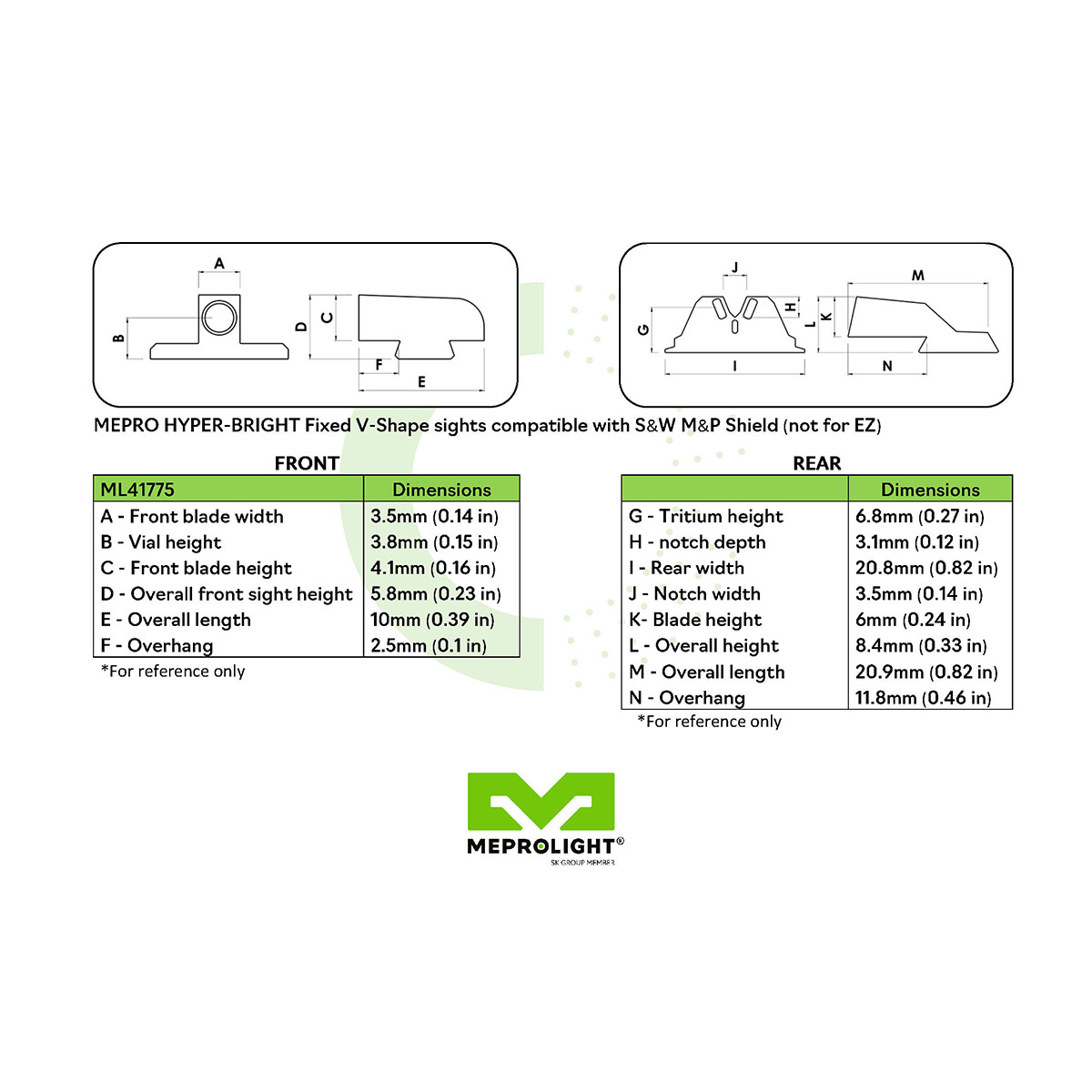 HYPER-BRIGHT CONCEPT: Mepro Hyper-Bright V-sights offer the most reliable illumination for day or night shooting. Mepro Hyper-Bright V sights feature an extremely bright contrasting colored ring on the front sight and V-shaped rear sight with two tritium vials and Yellow colored dot with radiant color that is charged by light and keeps glowing in lowlight conditions for a short time in conjunction with the tritium for fast and intuitive target acquisition.