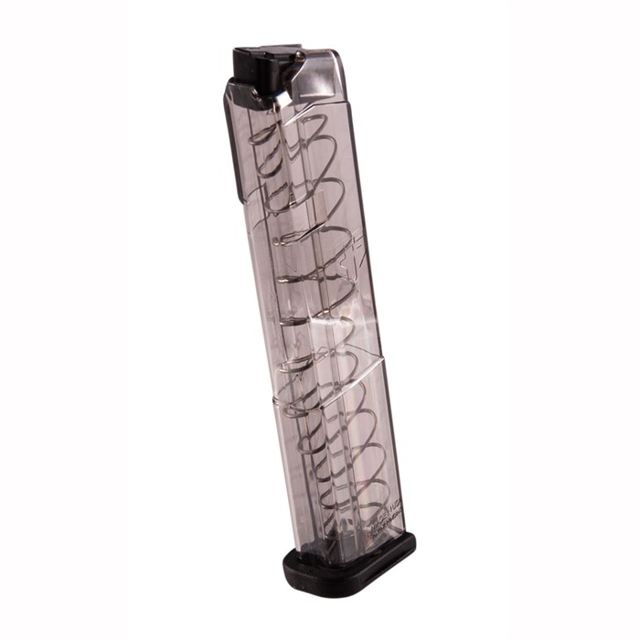 ETS translucent polymer magazines are constructed of lightweight performance polymer and provide OE reliability. The translucent magazine bodies are designed to make it easy to immediately recognize whether a magazine is loaded or not. The ETS translucent polymer Glock 42 magazines are available in 6 and 12-round capacities. Whether you're planning your EDC, heading out to practice, or off to the match, there is a reload to meet your needs. Easy disassembly with specially designed base plate Compatible with Glock, as well as aftermarket floorplates Creep resistant - feed lips and body won't spread when stored long term, even when loaded ETS translucent polymer magazines complete your Glock 42 carry or competition setup.