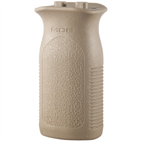 Lightweight vertical grips position your support hand close to the barrel to help you maintain maximum weapon control at all times. Ergonomically shaped design is optimized for use with the “thumb break” method of grasping the weapon, yet works just as well with a traditional vertical grip stance. Aggressive horizontal serrations on the front and back, plus crackle texturing on the sides ensure a secure grasp in all weather conditions. MVG™ (MOE® Vertical Grip) is designed to clamp easily to Magpul MOE handguards and the handguard of the Bushmaster ACR™ (Adaptive Combat Rifle) without the need for an accessory rail.