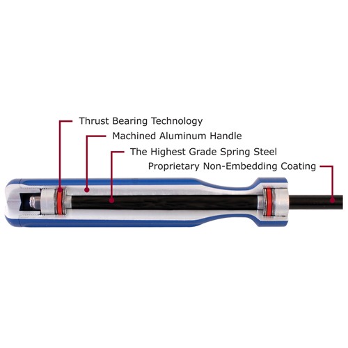 One piece, coated spring steel cleaning rods push a brush or jag through the toughest fouling without bending. Dirt and grit won’t cling to the proprietary, nonembedding coating for extra protection of your prized rifle’s bore. The machined aluminum handle is slim enough to avoid contact with the stock when cleaning from the breech, while still comfortable and easy-to-grasp for excellent control. Bearings at each end of the handle let the rod rotate smoothly to keep the jag or brush fully in contact with the rifling. Color-coded handles help you make sure you pick up the correct-caliber rod. Each rod has a soft aluminum ferrule at the threaded end to help protect the breech or muzzle from damage.