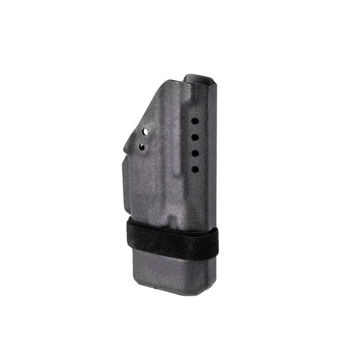 Retention is adjustable using the innovative 360-degree Velcro wrap, which provides extremely accurate and repeatable retention adjustments without the use of tools. This “tourniquet style” retention provides a very secure fit while still allowing for exceptionally quick presentations of the weapon from the holster.
